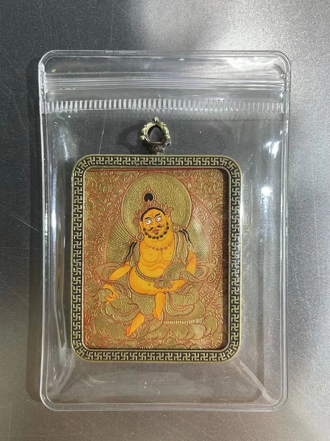 朱砂打底,绿松石、石绿、青金石等绘制身体部分,纯金泥染色