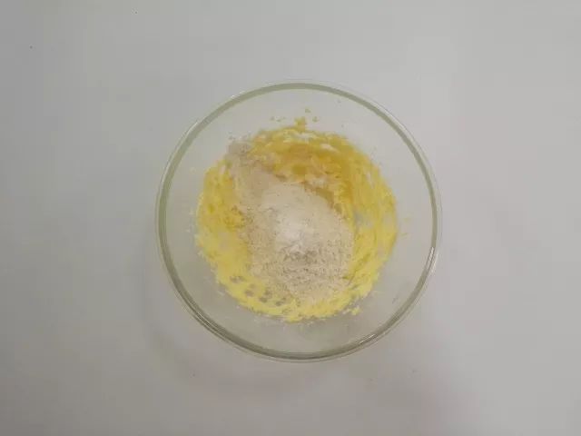 4.筛入丝绒蛋糕粉,使用软刮刀翻拌均匀