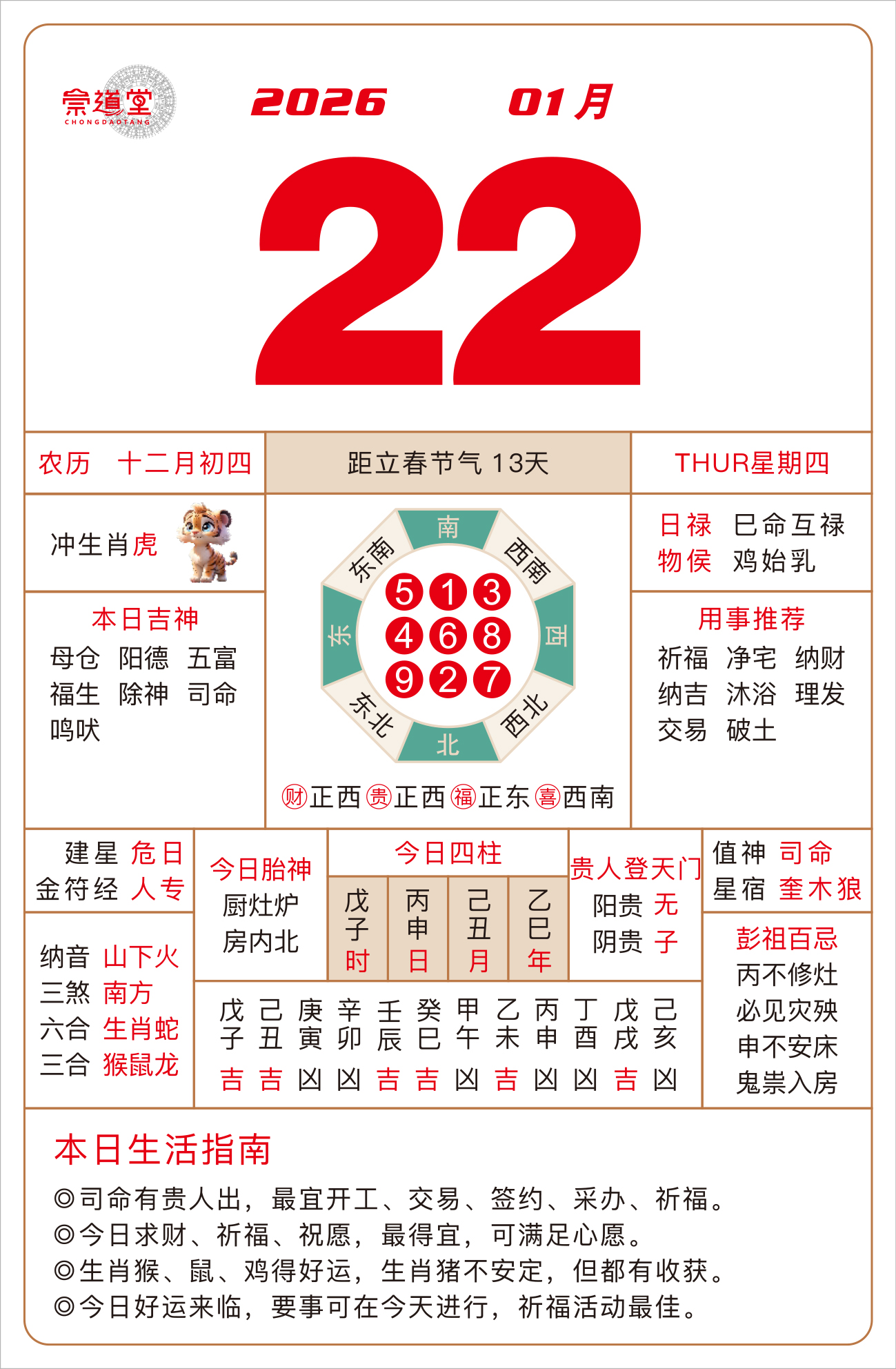 2026年1月28日 农历十二月初十 壬寅日 冲猴