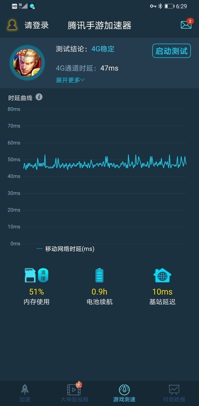 在游戏中,我们也能体验到5G网络带来的畅快,通过《腾讯手游加速器》的记录,我们可以看到,《王者荣耀》的时延曲线,以及平均47ms的时延。这对于这样的时延下玩游戏,能够感受到技能施放无延迟的快乐,游戏体验也能大幅提升。