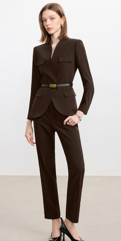 焦糖棕是秋冬的底气,这一身把‘利落’和‘温柔’捏得刚好 —— 是会议室里的靠谱,也是下班路上的松弛。