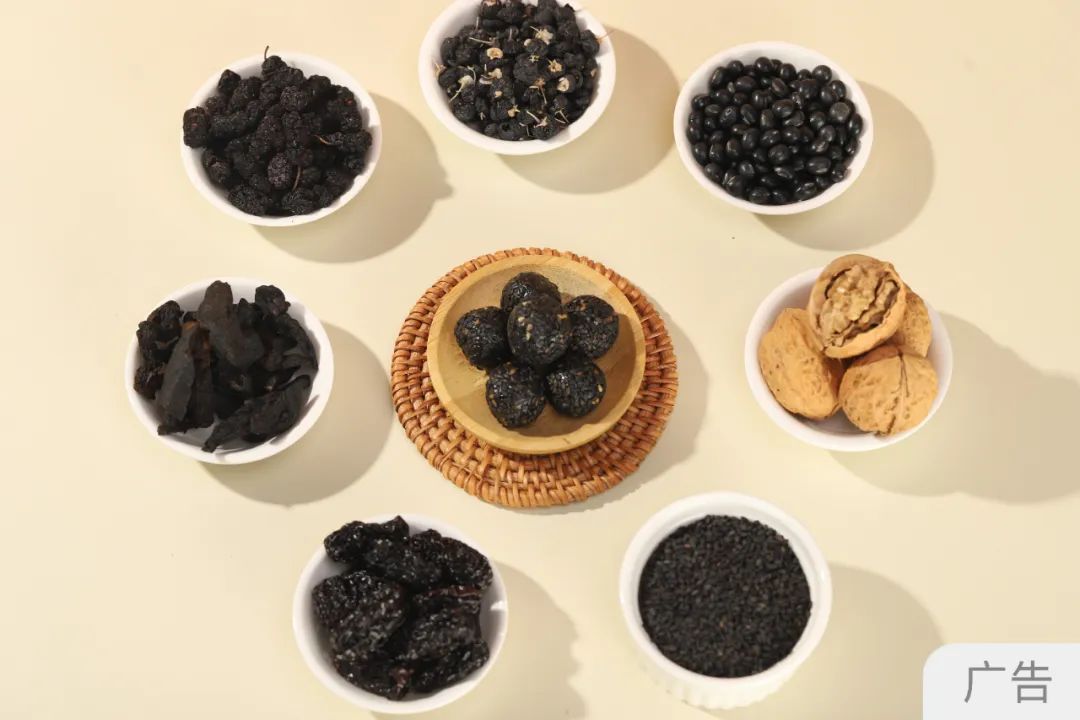 羊爸爸心选团队在黑芝麻丸中搭配了黑豆、黑米、桑椹、黄精、核桃、黑枣、黑枸杞,用麦芽糖醇替代蜂蜜的甜腻感,8种原料浓缩进了一颗小丸子里,饱含黑色精华,芝麻丸外层,还裹上一层炒香了的黑芝麻。