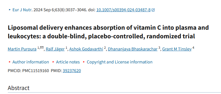 Liposomal delivery enhances absorption of vitamin C into plasma and leukocytes: a double-blind, placebo-controlled, randomized trial - PMC