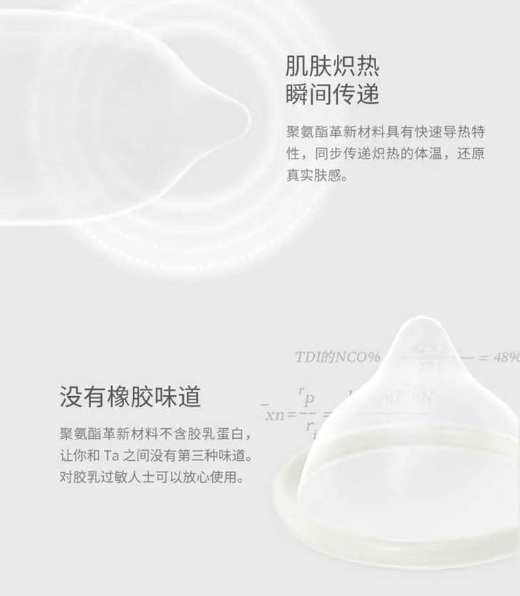 另外聚氨酯还有一个好处,就是导热快,因为更薄更贴合,所以可以还原真实体温,毫无阻碍感受两性的体温和接触感觉,瞬间传递炽热体温。