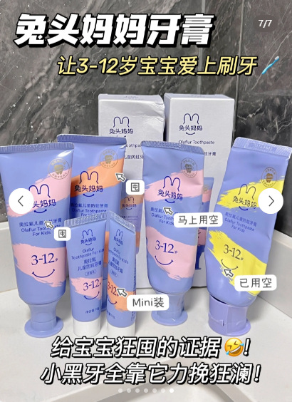 而且兔头妈妈牙膏根据宝宝年龄不同有好几款,区别就是含氟量的高低~