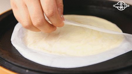 轻轻按压面团,将面团均匀地擀成圆形,完成后,将每张面坯中间用油纸隔开,可冷冻保存(想省事的可以一次性多做点,这样一周的早餐都有了)