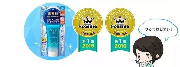 这支碧柔蓝管防晒,已经连续好几年霸占cosme大赏的排行榜的第1位了,深受日本国民的喜爱!