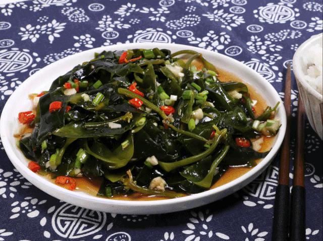 每100g裙带菜中钙含量为1040mg,足足是牛奶的10倍,很适合身体发育时期的儿童、孕妇和中老年人。