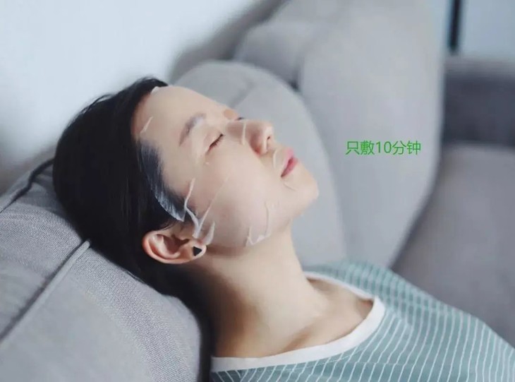 洗完脸擦干水,直接敷面膜,在干燥的空调房里给肌肤补足水~