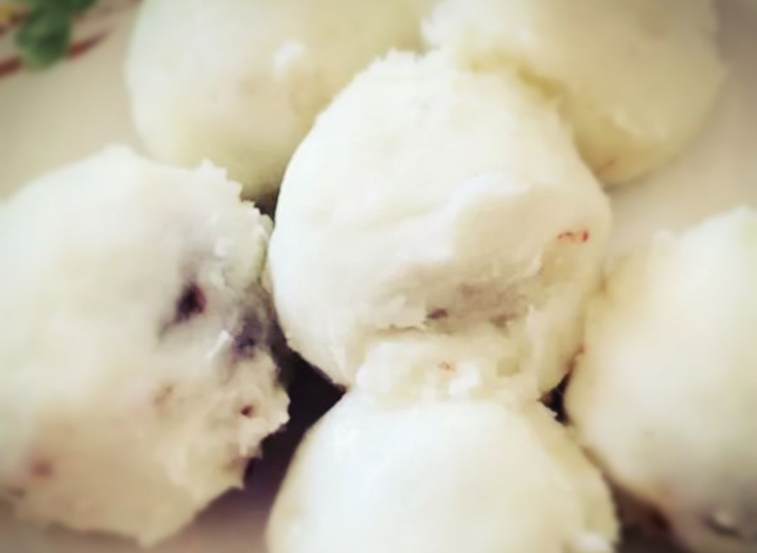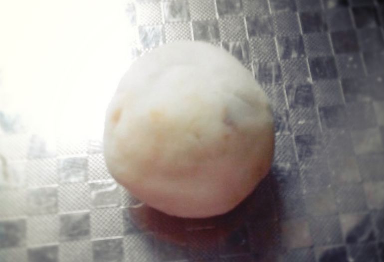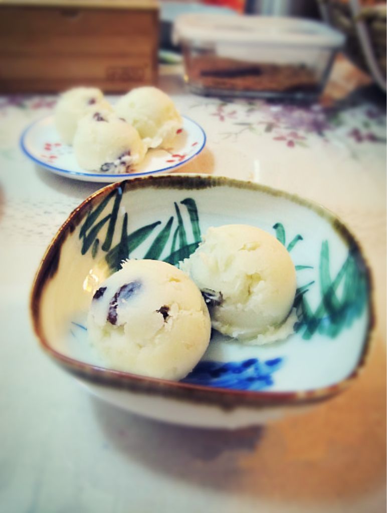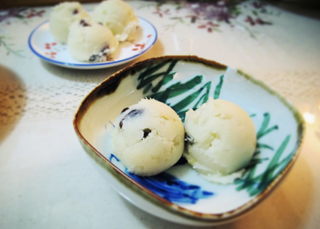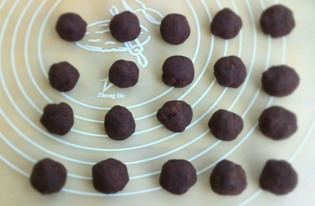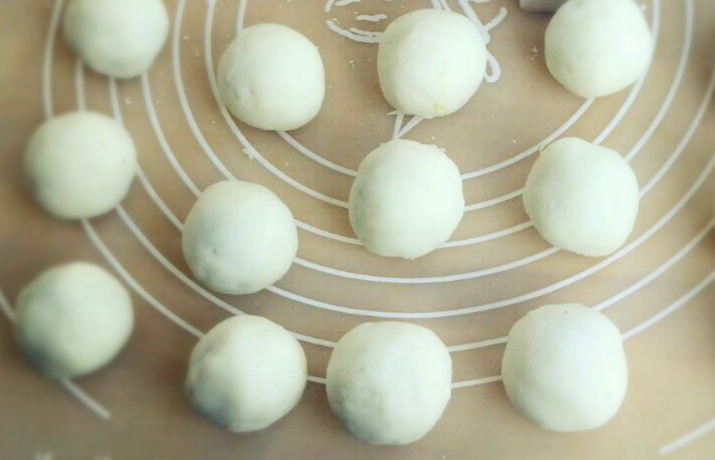 2、红豆馅搓成鹌鹑蛋大小的馅心待用;