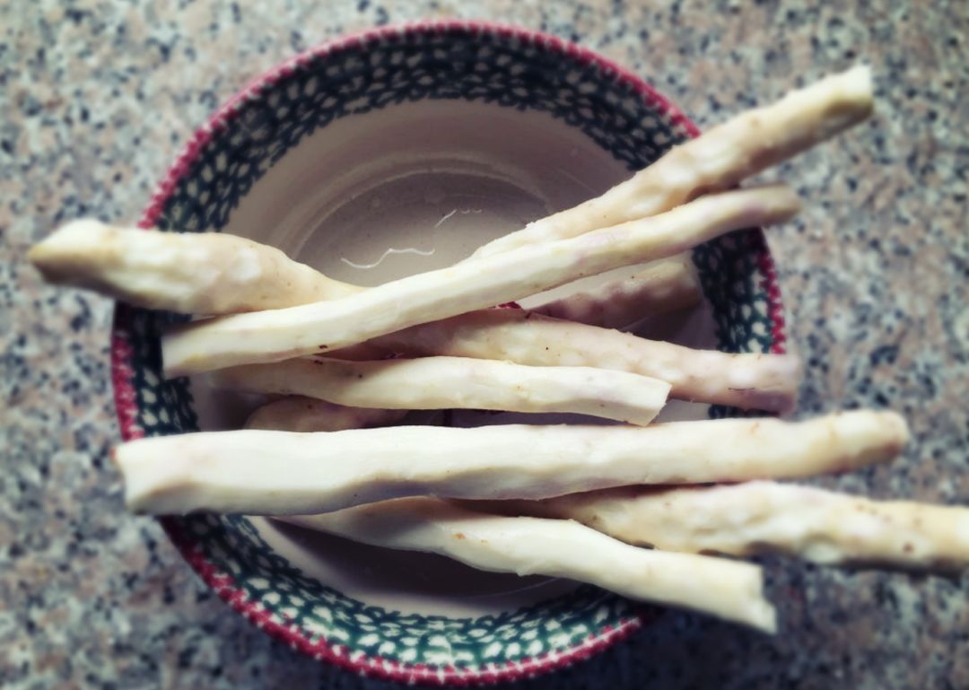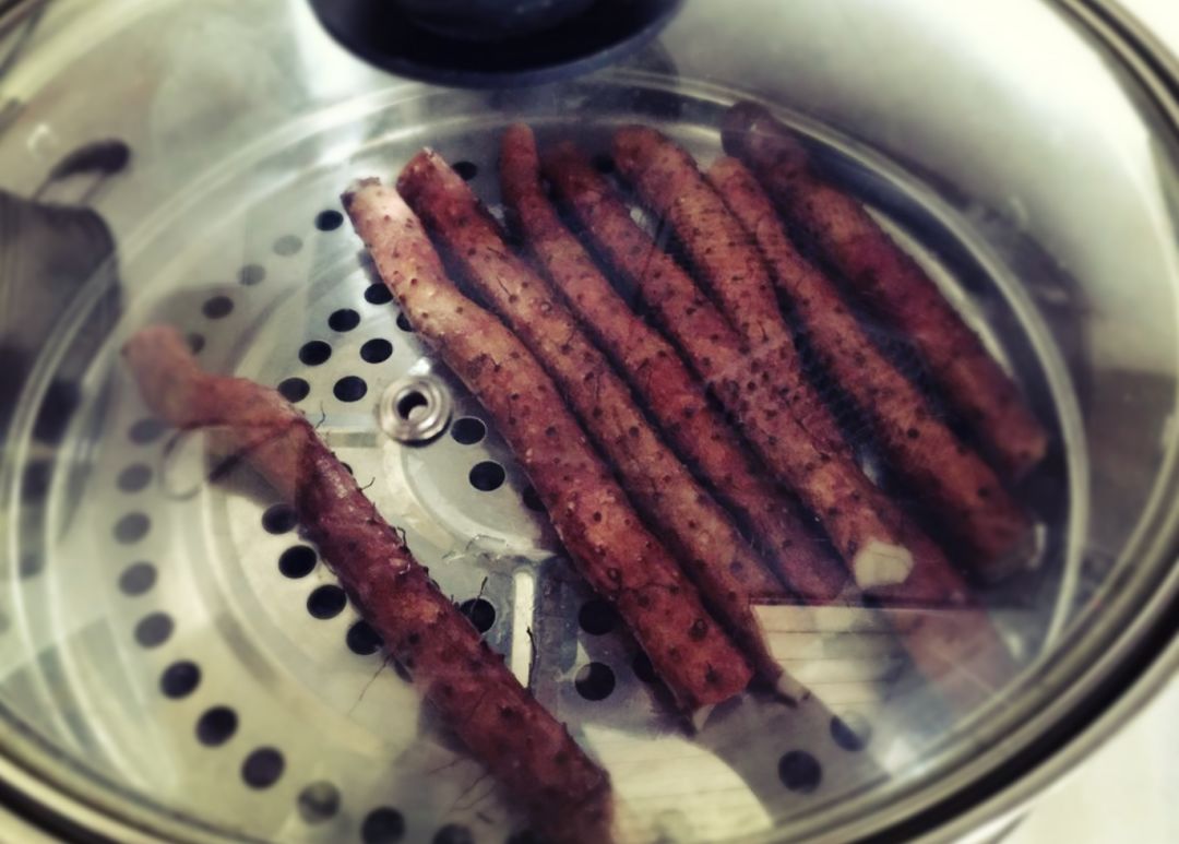 1、铁棍山药现在清水中浸泡5分钟,把表面泥沙冲洗干净,洗好的山药上蒸锅,大火蒸制20分钟;