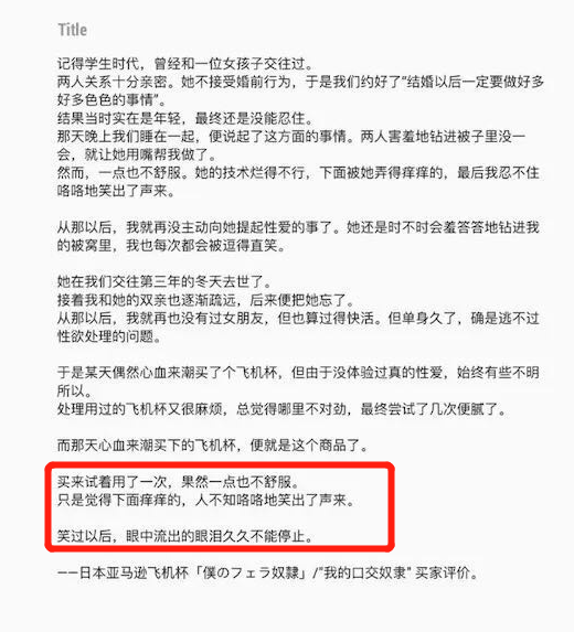 更有人分手后用个飞机杯,都能想到这糟糕的技术简直前任一模一样而泪流不止!