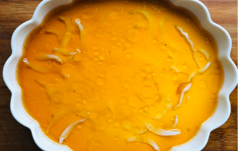 4.生抽或者蒸鱼豉油1勺,温水5勺,香油1小勺。搅拌成调料汁。蒸好的鸡蛋羹取出,用勺子将调料汁倒在上面。