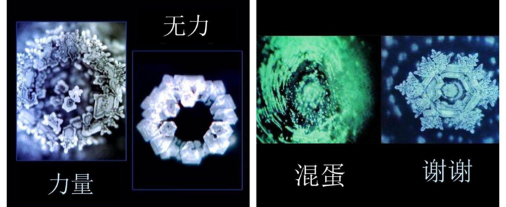 而当向水传达负面情绪,如愤怒、厌恶时,水结晶则会变得混乱无序。
