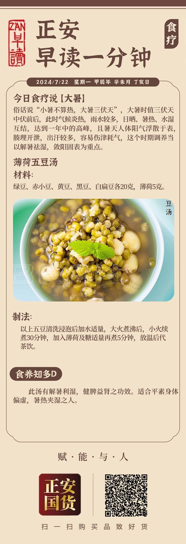 7月22日 应季食方【薄荷五豆汤】解暑利湿