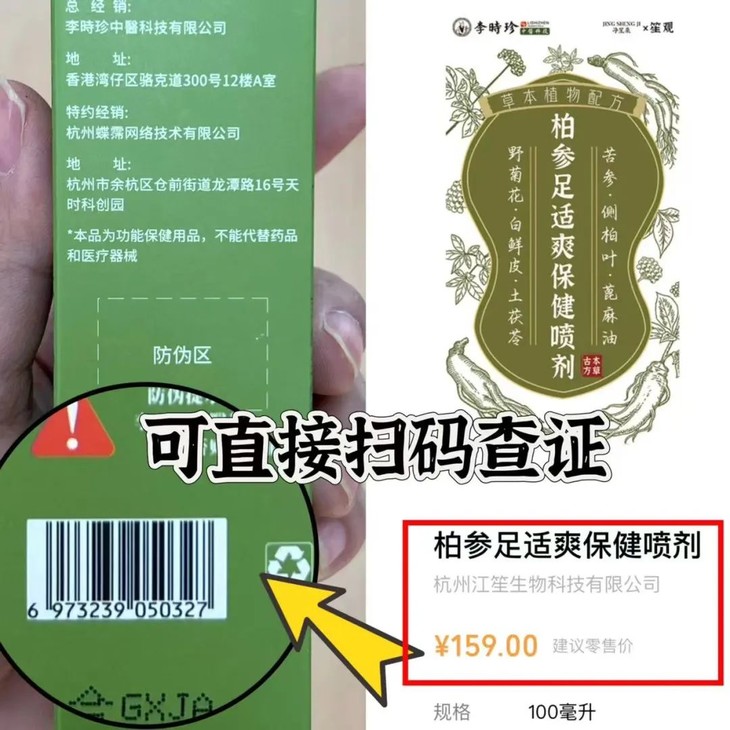 咱们这款李时珍净笙集柏参足适爽扫码官方零售价也是159元/瓶!