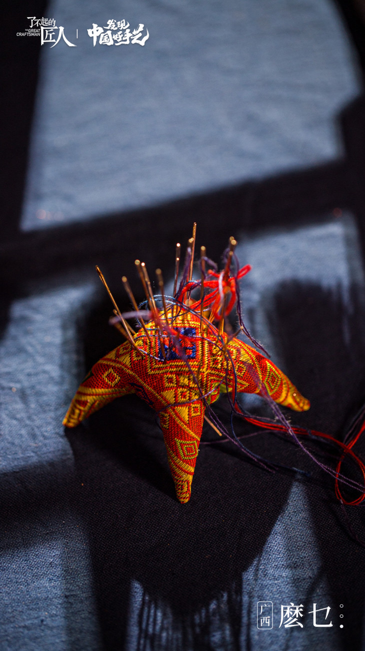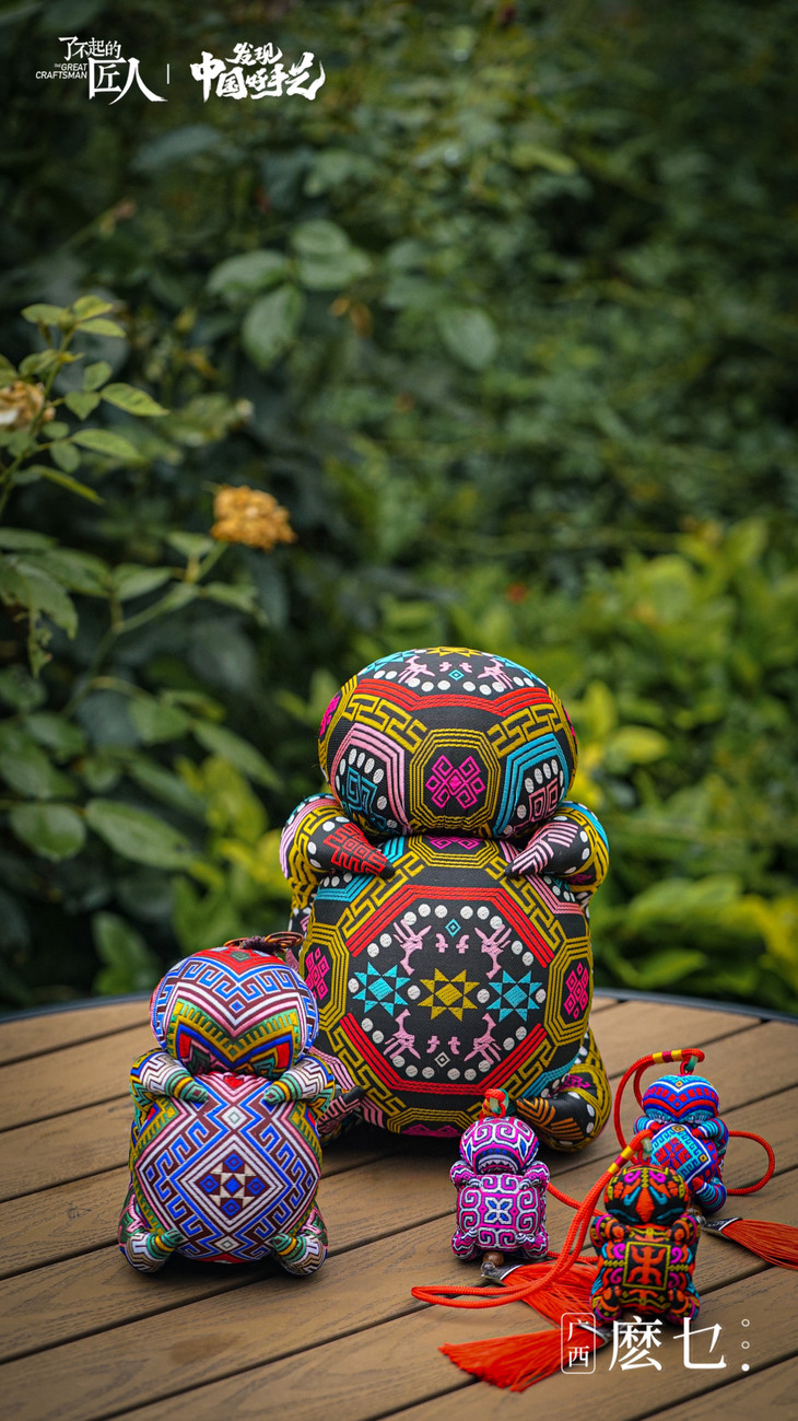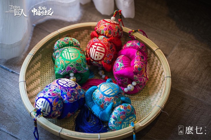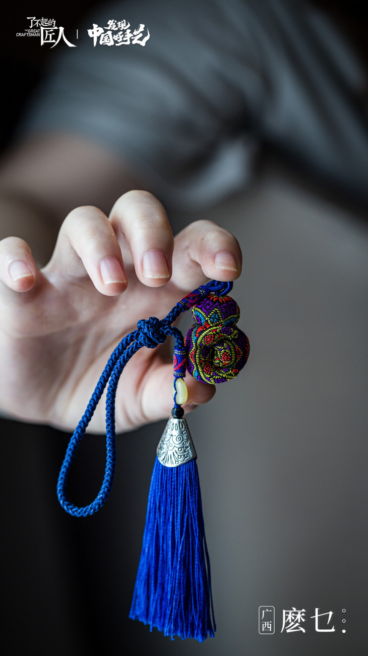 “麽乜”(mō miē)从壮语翻译过来有着神与母亲的意思,壮族特有的香囊配饰物。这是一门曾经被人们遗忘了半个世纪的民间手工艺,它承载了壮族先民神话传说和文化祈愿。