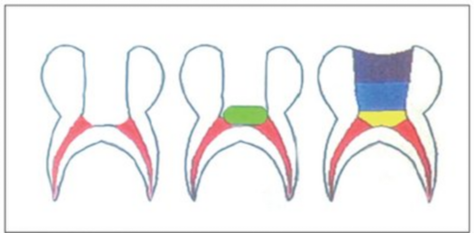 不可复性牙髓炎的牙髓组织在发生早期感染时,不一定感染波及整个牙髓,根据病理学研究,会出现牙髓炎症局限在冠髓而未累及根髓的情况。同时随着生物材料和显微设备的发展,相对于根管治疗,更为保守的牙髓切断术逐渐成为微创治疗趋势。