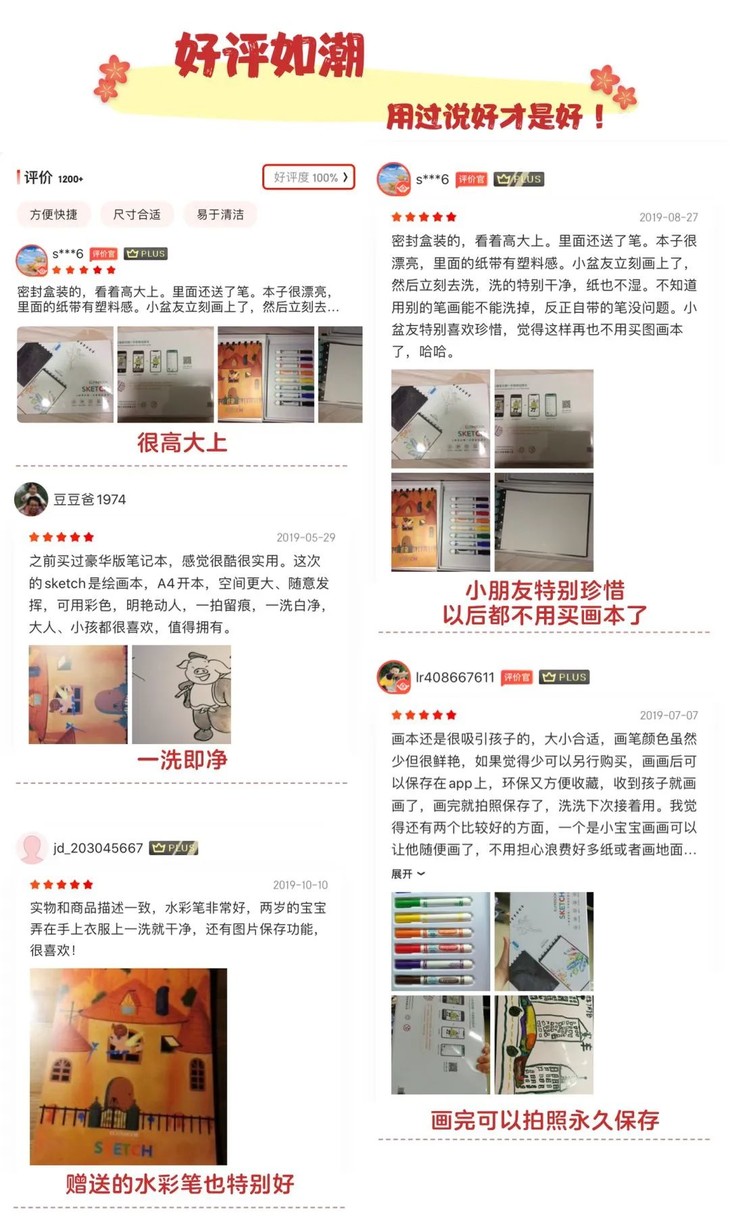 Elfinbook的水洗绘本刚一上市,官网就好评如潮,买过的朋友都说它一洗就干净,小朋友非常喜欢和珍惜,以后都不用买画本了,拍一下还能永久保留画作,赠送的水彩笔也特别好。