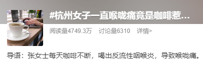 很多人都在说,自己每天在靠咖啡“续命”。家住杭州的张女士很喜欢喝咖啡,但就是因为每天一杯咖啡,竟把她送进医院,也“送上热搜”!