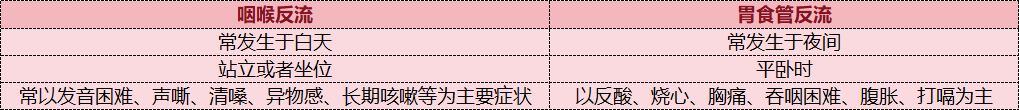 需要注意的是,咽喉反流还有一个近亲叫胃食管反流,两者很容易被混淆,但它们却是两种不同的疾病;我们可以通过对比,更好地认识咽喉反流这种疾病。