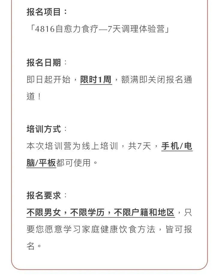 ♦️培训内容高效精简:学时短,7天的培训时间,经过多位专家的实践检验,并结合国人的常见饮食问题,总结凝练成精华,不讲虚话,都是干货;