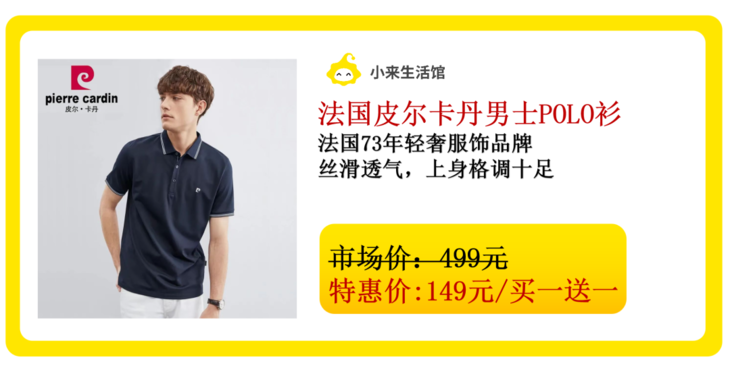 超级大捡漏!法国73年国民大牌,皮尔卡丹专柜Polo衫,149元限量买一送一!