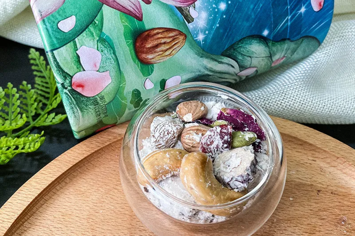 玫瑰坚果藕粉,七种好料搭配,既能享受坚果的爽脆,又有果肉酸甜的味蕾刺激,还有浓郁玫瑰花香迎面扑鼻,层层风味,兼具美味与营养。