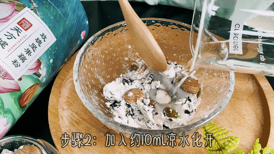 2. 倒入少许(约10毫升)冷水,搅拌均匀;