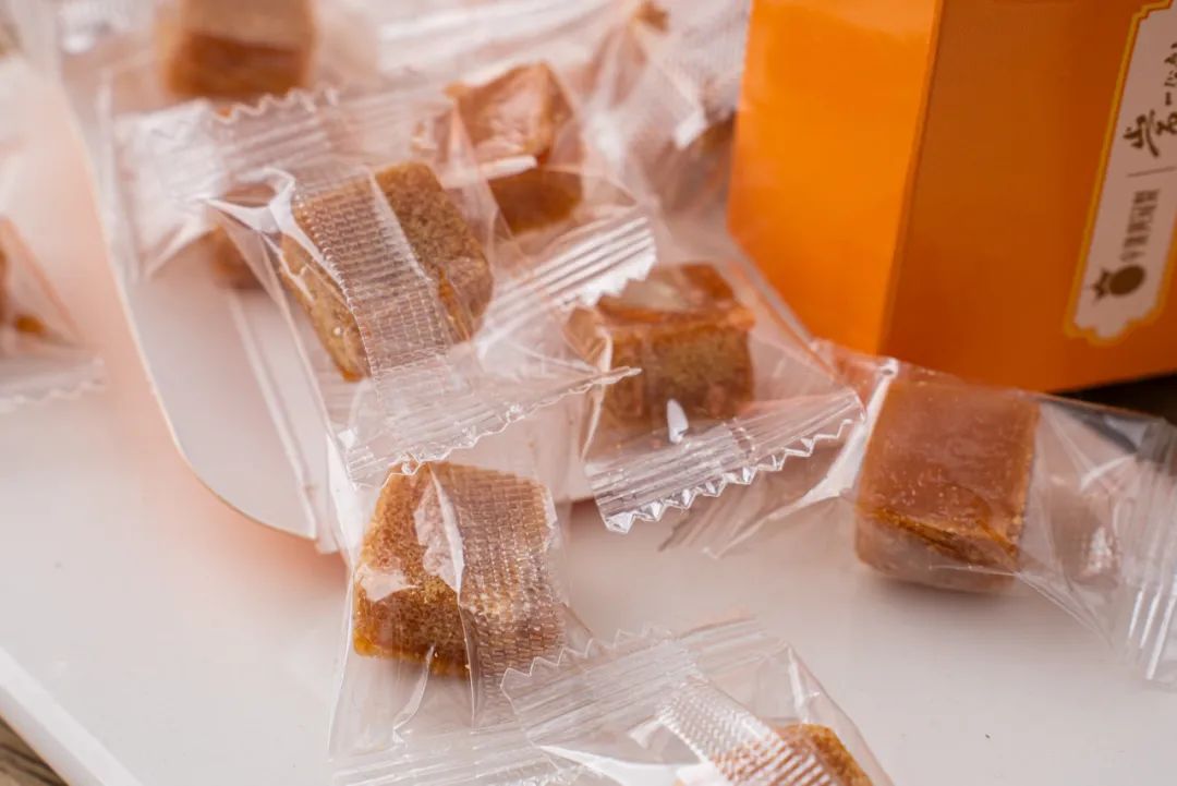 这样出来的梨膏糖,味道浓郁,质地酥松,1块大概可以含服20分钟左右。
