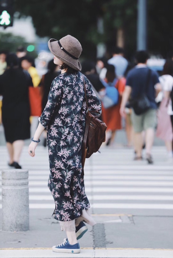 在人群中遇见一身亚麻女子
