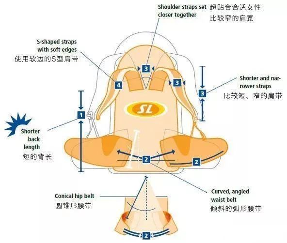SL女性产品线横空出世,该系列是专门针对女性身体特征研发,聘请了7位德国女性登山家成立团队。研发顾问则特别找来了著名女登山家Gerlinde Kaltenbrunner(全球首位无氧完登全部14座8000米山峰的女性)。