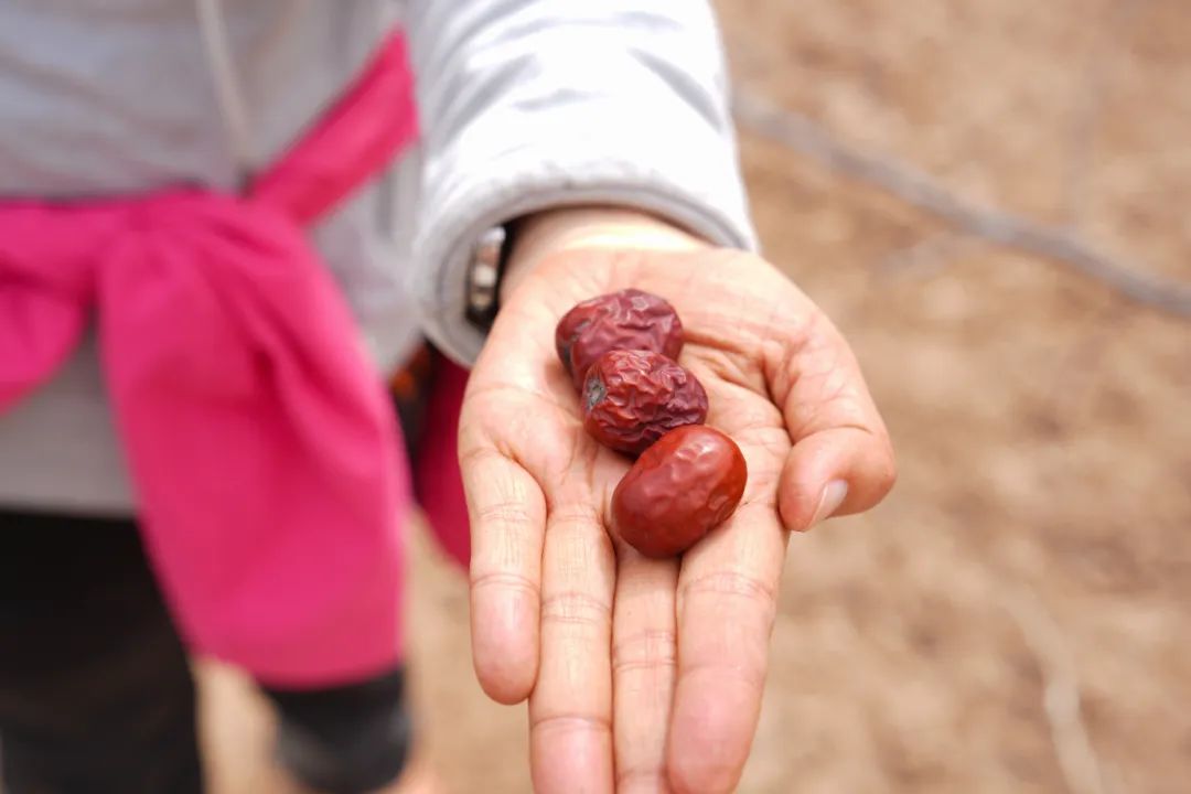 这位大姐姐看到枣树也非常兴奋,一个劲的拉着我分享她采到的大枣,她说这是自然风干的大枣,天赐的美味!大家也被她的热情所感染着,我想这可能就是徒步的魅力所在,置身于自然中一切简单的事物都会让人开心一整天。