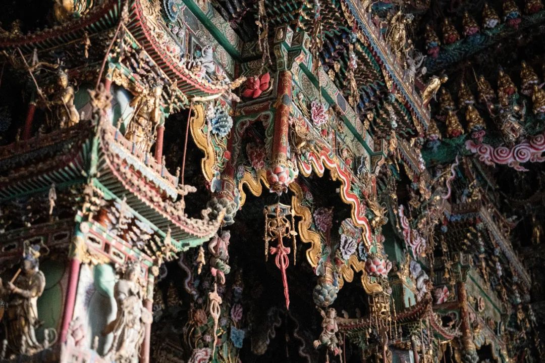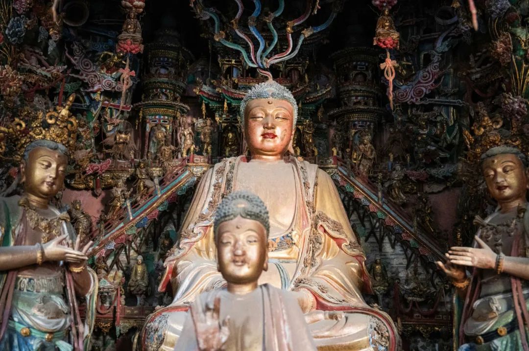 小西天的整体占地面积并不大,依山而建,最令人叹为观止的,莫过于大雄宝殿的悬塑艺术。那些精妙的悬塑,让整个大殿成了立体的佛经画卷,我们抵达的时候是下午,光线略有些昏暗,据说清晨才是最佳观赏时段,阳光会像舞台追光一样,为这些艺术品打出最完美的光影效果。