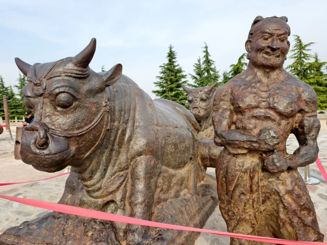这四头大铁牛,每头铁牛重达30-45吨,身长3米有余,这些铁牛见证了盛唐的强盛国力——当时为铸造它们,耗尽了全国年产铁量的五分之四。它们曾经是蒲津浮桥的"地锚",与铁人、铁山、铁柱共同组成严密的锚固系统,维系着这座横跨黄河的交通要道。