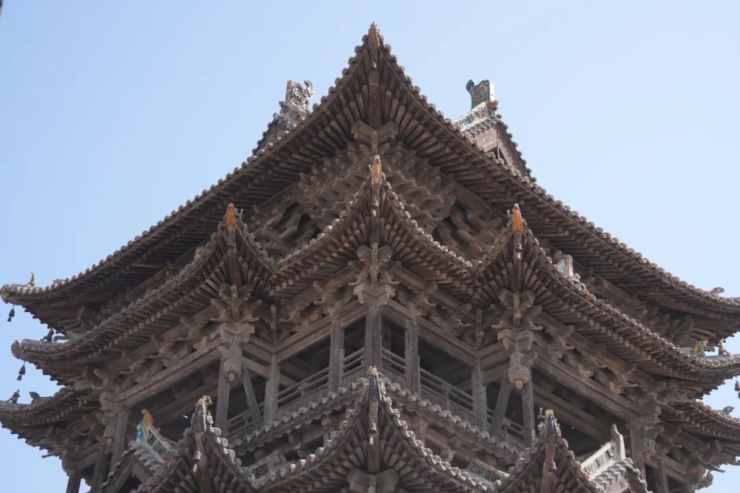 飞云楼,是中国现存最复杂的纯木结构楼阁之一,与应县木塔并称"南楼北塔"。始建于唐贞观年间,虽历经数百年风雨地震,仍巍然屹立。