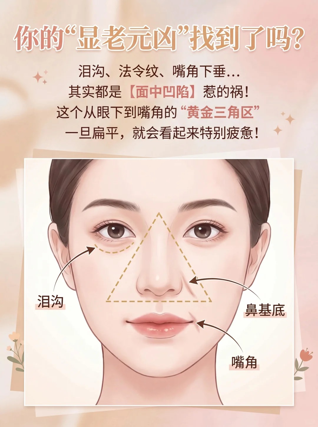 姐妹们!是不是总觉得法令纹、泪沟特别明显,看起来很疲惫显老?😫 元凶可能就是——面中凹陷!