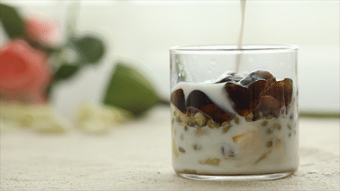 椰奶甘润生津,红薯补脾益气,都是很不错的小料。还有小养肾气、滋养阴液的葡萄干,都可以加。