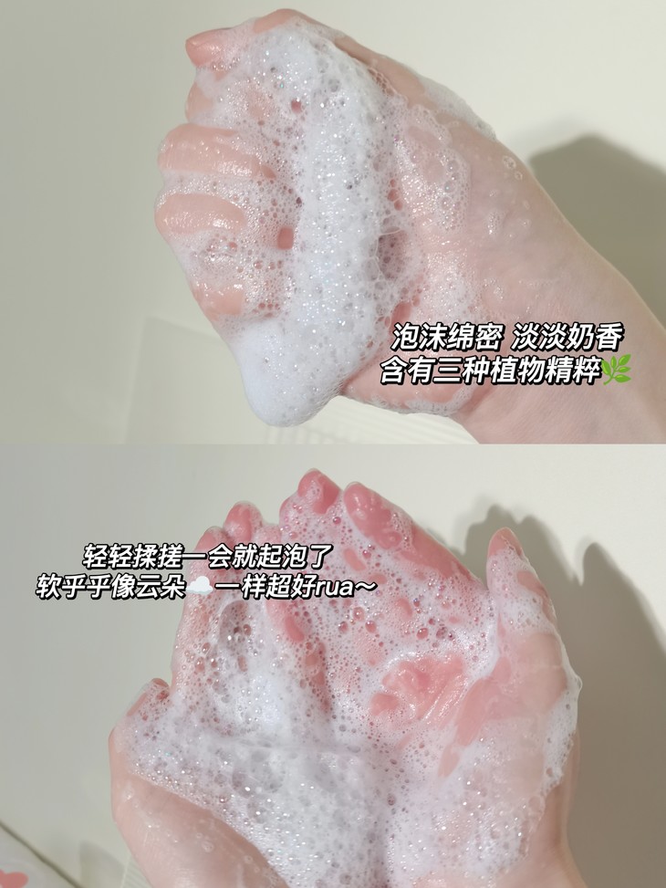 起泡超丰富,像是一头扎进了棉花糖里!能够轻松带走深层污垢和多余油脂,额头、鼻翼、下巴这些出油多喜欢长痘痘闭口的地方多来回按摩几下,洗完皮肤干干净净,水润又细腻
