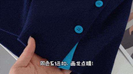同色系纽扣,撞色的小心机,克莱因蓝真的巨显白,黄黑皮直接冲!