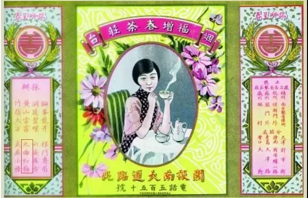 苏州老吴世美茶号广告纸,右起第5行有"九曲红梅"字样