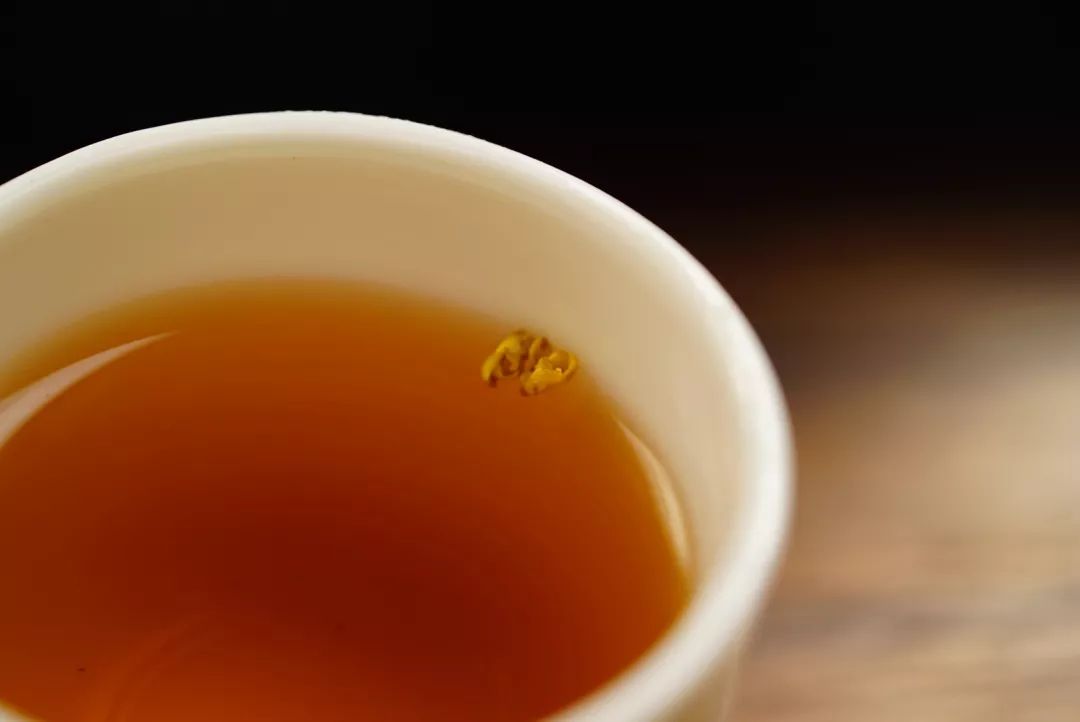 这款茶并没有一般红茶的强酸性,极其温柔,清香适口,桂花在杯底清晰可见,茶汤中花瓣摇曳生姿,边饮茶,边赏花,边闻香,一杯茶里从春夏到秋冬,一口饮尽四季,夫复何求。