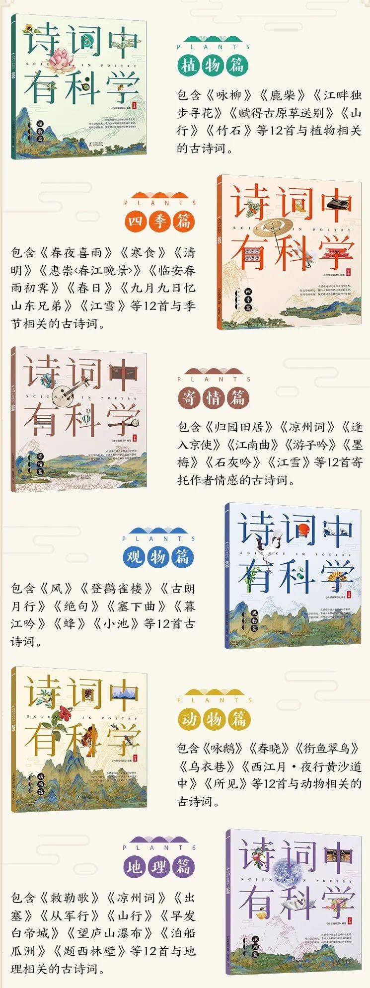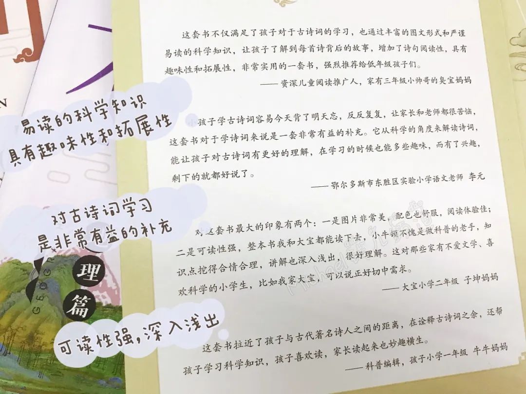 这套书不仅很实用,还特别有趣,实现了诗词和科学的无缝拼接,让孩子游刃于语文和科学之间,特别适合小学生阅读。