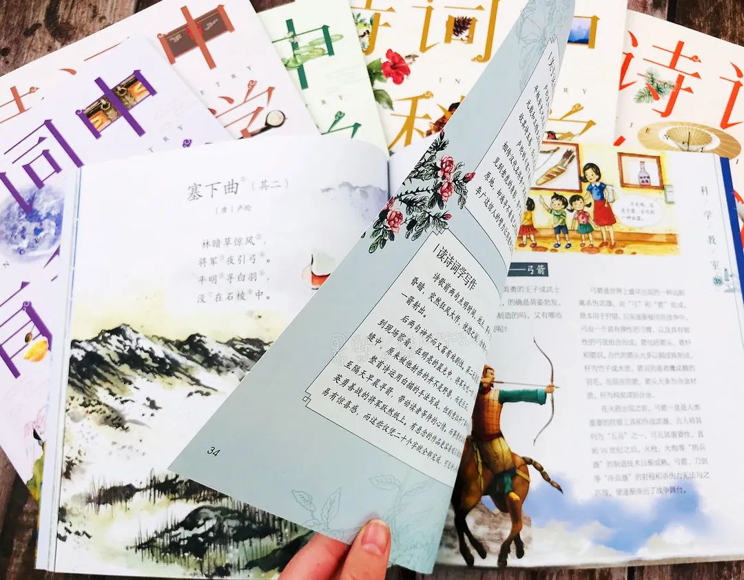 如此,让孩子对古诗词,不再只有优美的意境和文绉绉的印象,而更添了趣味性和知识性。