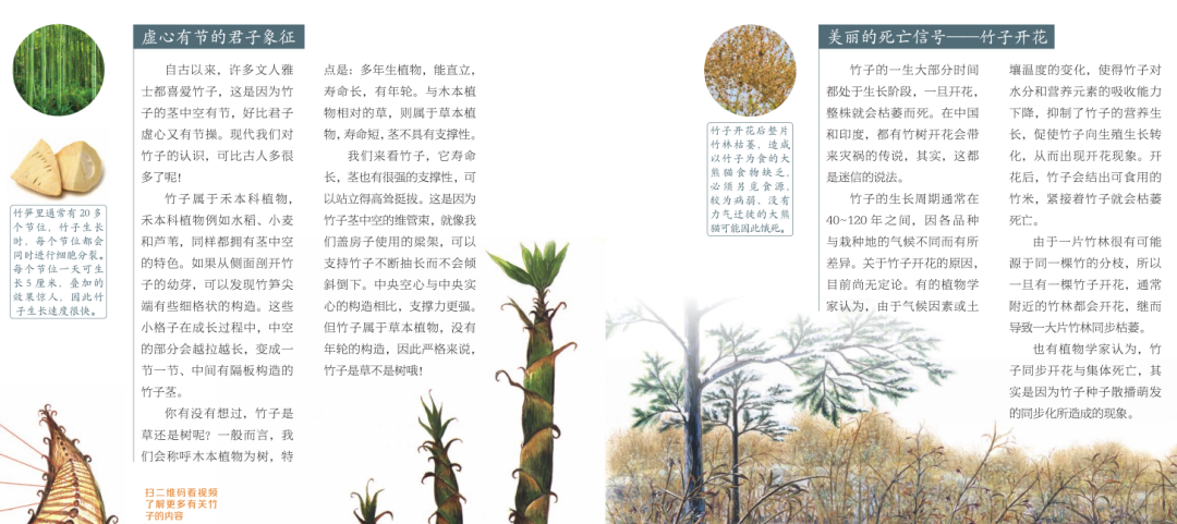 透过竹子,给孩子讲述了“虚心有节”的君子品质,还从科学的角度,纠正了“竹子开花”代表灾祸的迷信说法。