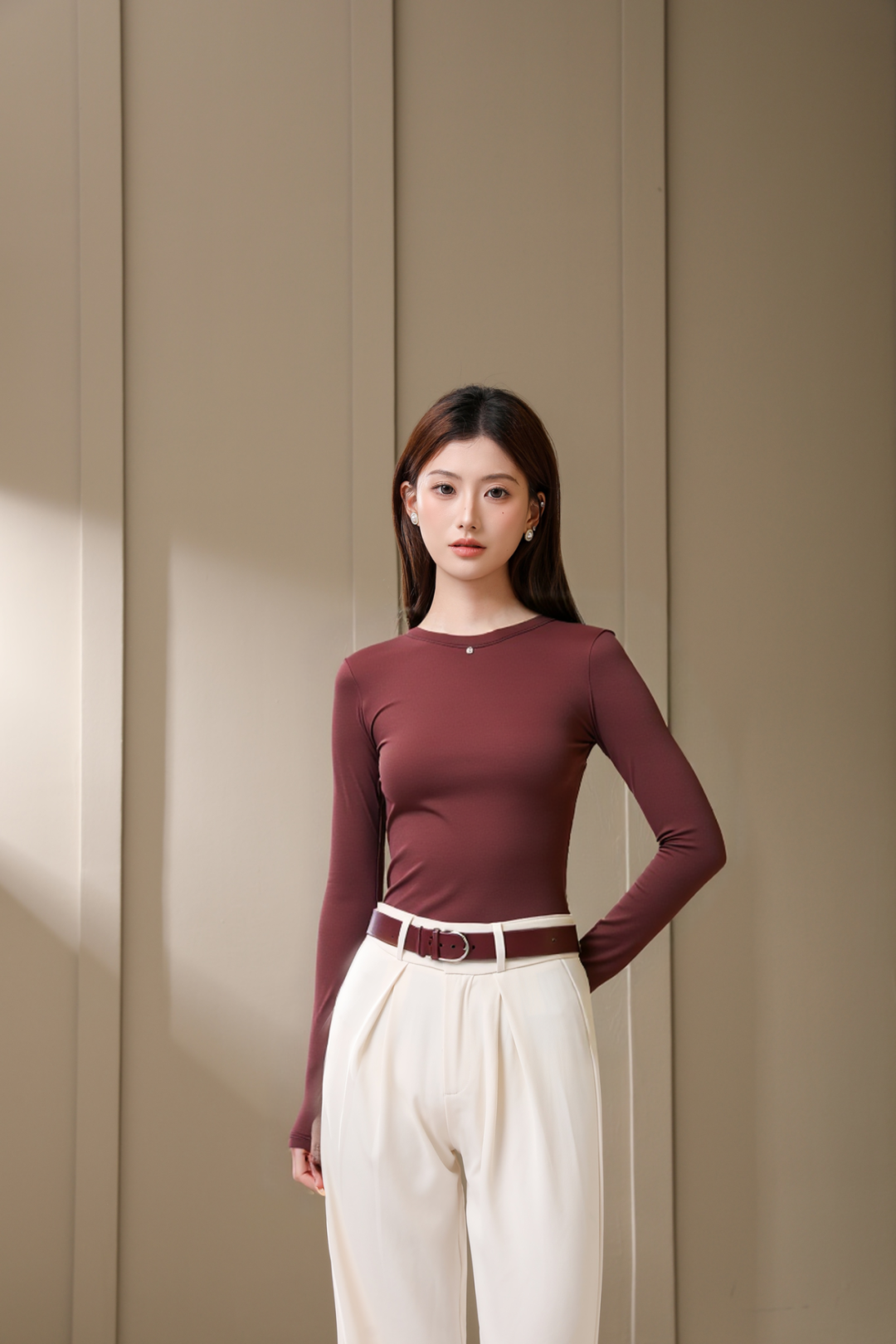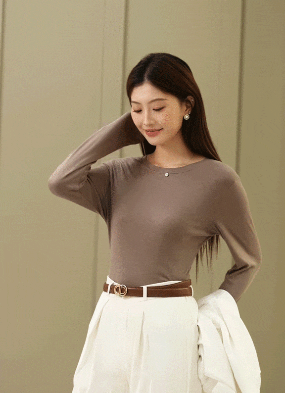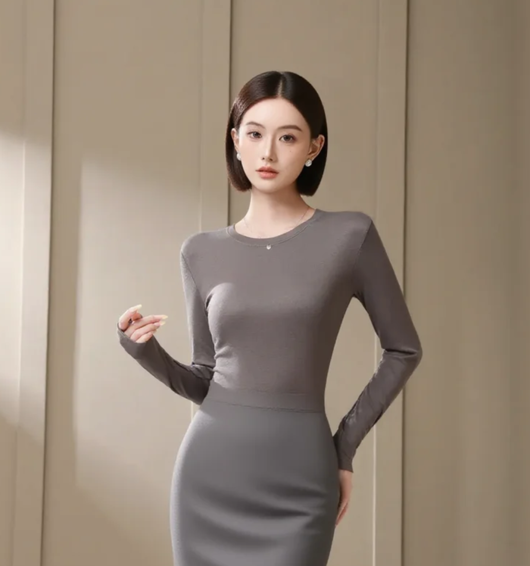 很多打底衣只能 “藏着穿”,内搭时在西装里鼓出褶子,显肩宽背厚;外穿时松松垮垮没型,看着就没质感。