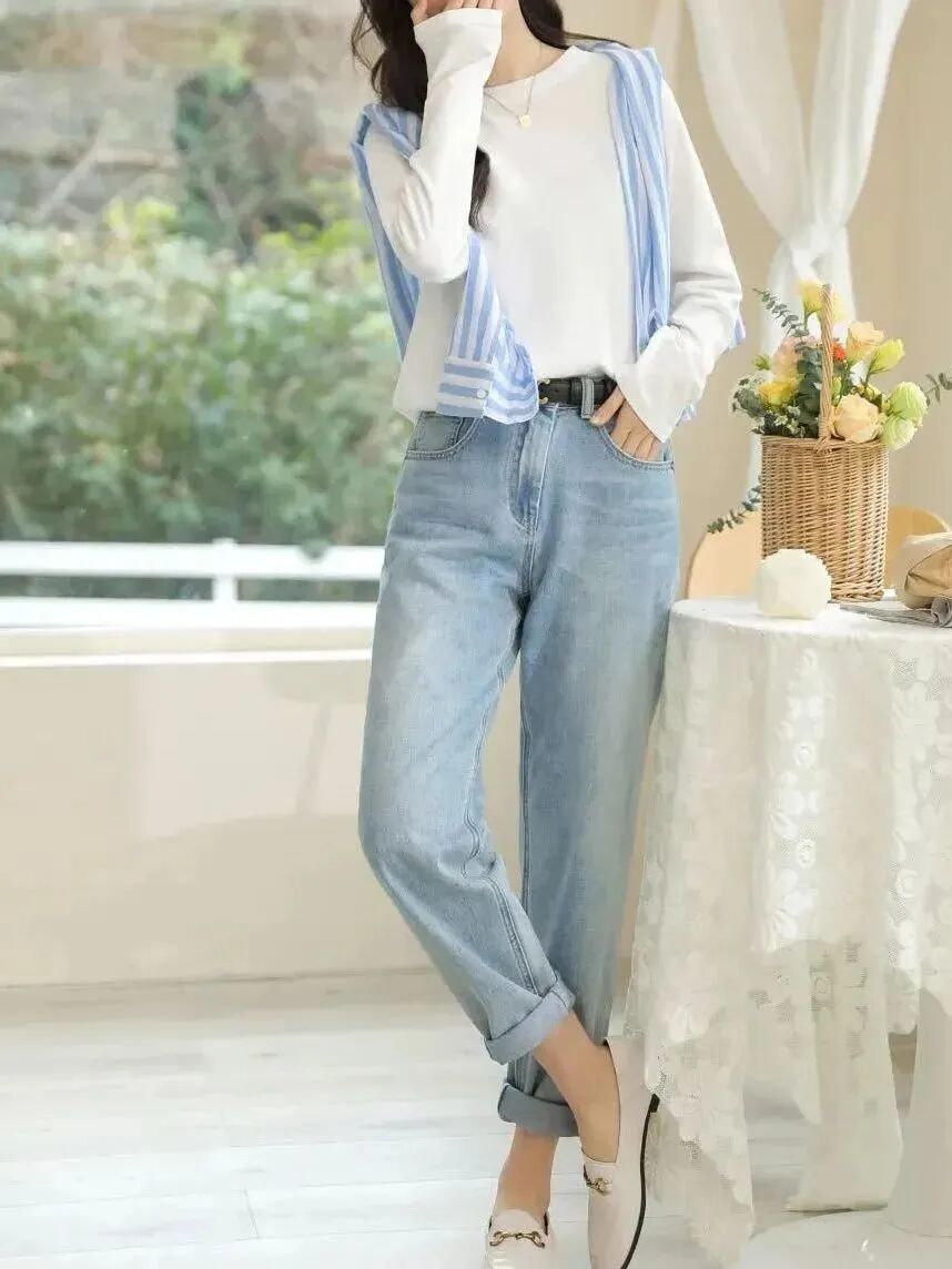 单穿配牛仔裤,是喝下午茶时的温柔感;叠穿在毛衣里,对抗骤降温刚好;内搭在大衣外套里,通勤也体面。