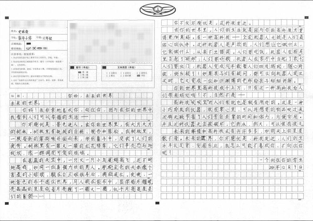 未来是怎样的,我想大家都非常好奇,我也无数次的畅想过。会是我读过的科幻小说描写的那样吗?此次写作,我将时间定格到百年后的家乡,其中的情节是我对比现在后的思考、想象。希望家乡能在我们新一代人的建设下越来越美,越来越好。