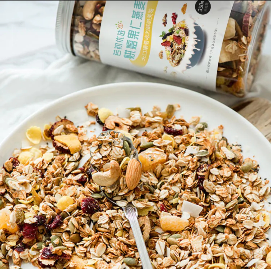 16种健康食材,富含膳食纤维,不含任何添加剂,坚果水果比例高达50%,大口嚼着吃,酥脆美味停不下来,非油炸,也可搭配酸奶。