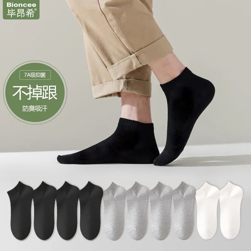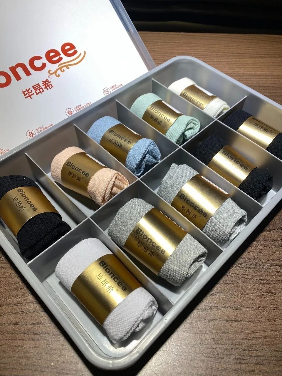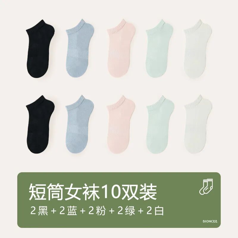 生物科技纺纱+植物精粹的加持,独有金银花精油配方,令袜子持久留香,久穿不臭。金银花保护层,将精油成分锁在面料里面,让面料更柔软细腻芬芳愉悦,同时具有很好的滋润保湿效果。集抗菌、滋润、祛汗、除臭、焕肤、修护六大功效于一体,长时间保持鞋内干爽。抑制细菌繁殖,防止异味产生,长时间保持鞋内干爽,洗涤100次,抑菌达到持续达到99%。好穿防臭脚,同时还能“足疗”,就像给脚丫敷上了“药草脚膜”,有效缓解、改善烂脚、臭脚、汗脚问题!这款和市面普通袜子不同,最大之处是不含聚酯纤维,超强吸汗透气,干爽一整天。采用棉类天花板级别的阿克苏精梳棉,除了含有少量弹力纤维(保证弹力)之外全都是棉,只有棉!比普通棉袜更加亲肤舒适透气,每一步都像踩在棉花上!采用昂贵缝纫线缝制,所以非常干爽透气。精梳棉的做工艺成本比纯棉价格高出30%,不易变形、耐洗,穿着比纯棉舒适。所以用它们做成的袜子在成本上以及价位上也会有存在较大差异。同样是袜子,给大家带来的价值体验会完全不一样。今天我们和品牌源头工厂直合作,59.9元就能到手一组10双!买到即赚到~!特别是到了春夏天,一双劣质不透气的袜子非常容易诱发脚上细菌。众所周知,脚气是由细菌和真菌感染而得的一种皮肤病。脚气是一种传染性很强的皮肤病,你得了脚气,如果别人穿了你穿过的拖鞋,袜子,甚至是你可能只是不小心踩了别人一下都可能会让对方也得上脚气。BIONCEE-7A级别抑菌,消臭性能,洗涤150次反复测试证明,抗菌均达到99%,持久有效护理脚部肌肤。单只袜子就有上100万个孔隙,可以瞬间吸收自身重量20倍的水分!即使是大汗脚,汗液也被“嗖嗖”地吸掉,不会有黏黏的感觉。全方位3D通风,时刻干爽!40度的天气都能穿出裸感级别!大汗脚夏季福星!7A级-抑菌,真正的抑菌是不管你怎么洗,还是会抑菌。袜子本身没有抑菌性,市场上很多是3A级抑菌,BIONCEE云感抗菌袜采用了物理抑菌,能够达到7A级的抑菌效果。普梳棉成本低廉,更注重批量、快速生产,某宝常见的二三十/十双用的就是这类棉。精梳棉不仅平整光滑,还具有强韧耐磨性,透气吸湿性和不起球、不褪色、不易变形等特点。精梳棉通俗来说就是就是一种去除棉中杂质,留下的精品棉的棉纱工艺。相较于普梳棉,精梳棉讲究精工细作,所以成本较高,一般用于高档棉织物的制作面料。穿上软软糯糯的,不扎肉,一上脚,就让人感叹真舒服!阿克苏自然条件优越,水量充沛,全年日照可达3000小时以上,特别适合棉花生长,所以阿克苏又被称为“中国棉都”。这里产的棉花的品质从色度、马克隆值、纤维长度等参数均可以和世界上埃及棉相媲美。制造出平滑的纱线,让棉花更有韧性,不易起毛球,棉花的品质也就更加稳定。懂行的人都知道袜子工艺中的针数会直接影响穿着体验。一线品牌浪莎、梦娜也集中在168针和200针......好比跑圈,一个人是200米一圈,一个人是108米一圈,其他条件不变,一天下来圈数就会差很多。200针做袜子慢,产量低,所以贵。